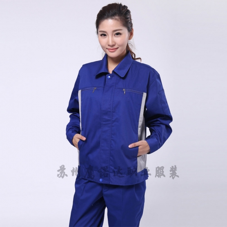 JNTY:艳蓝配浅灰涤棉纱卡加工行业工作服AC081-SC