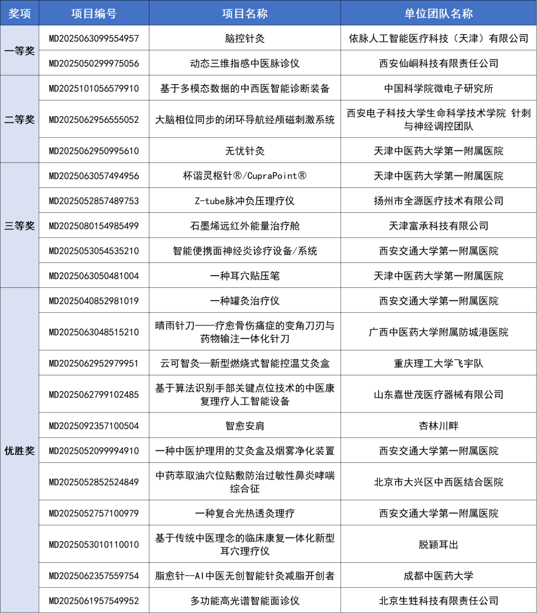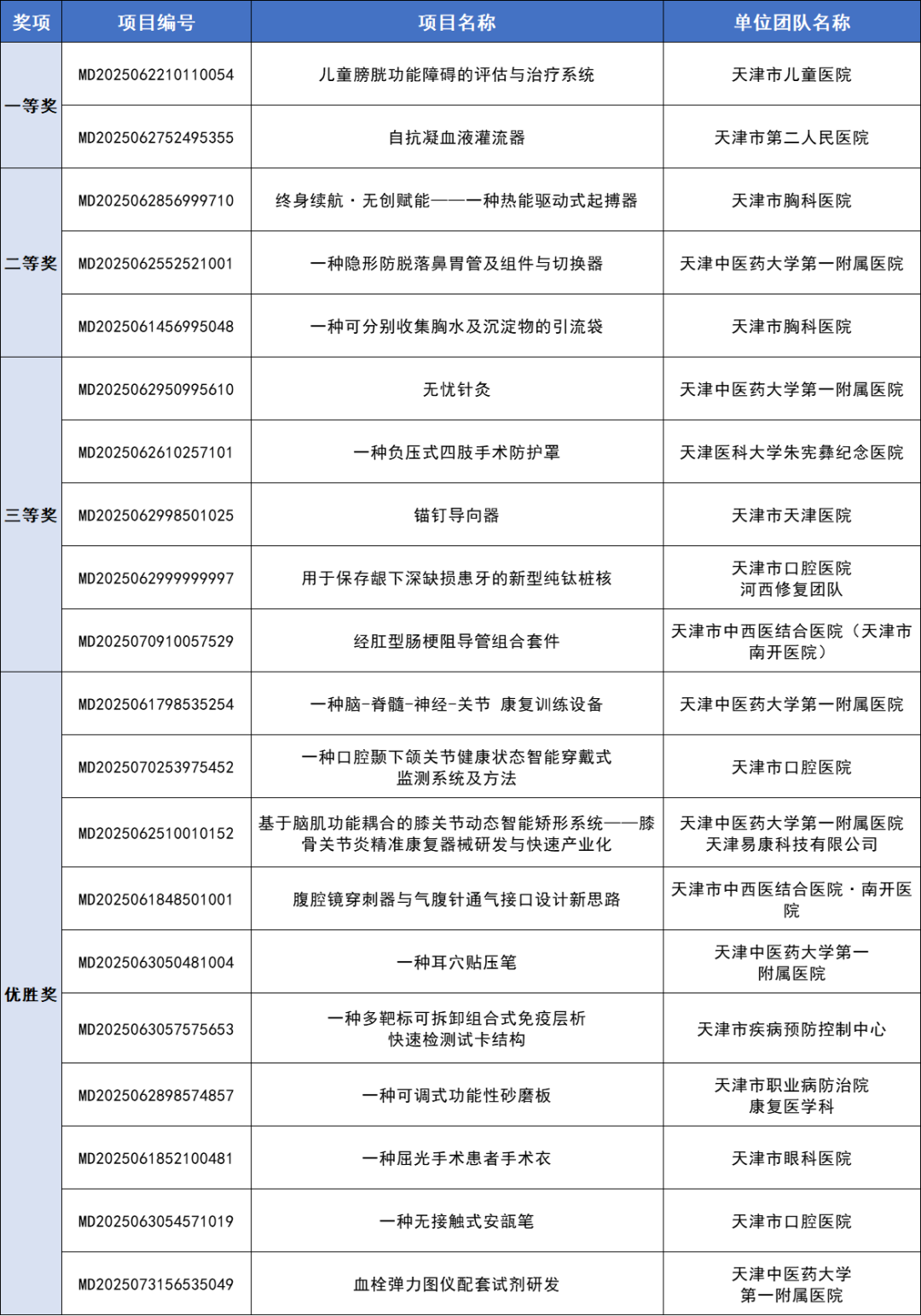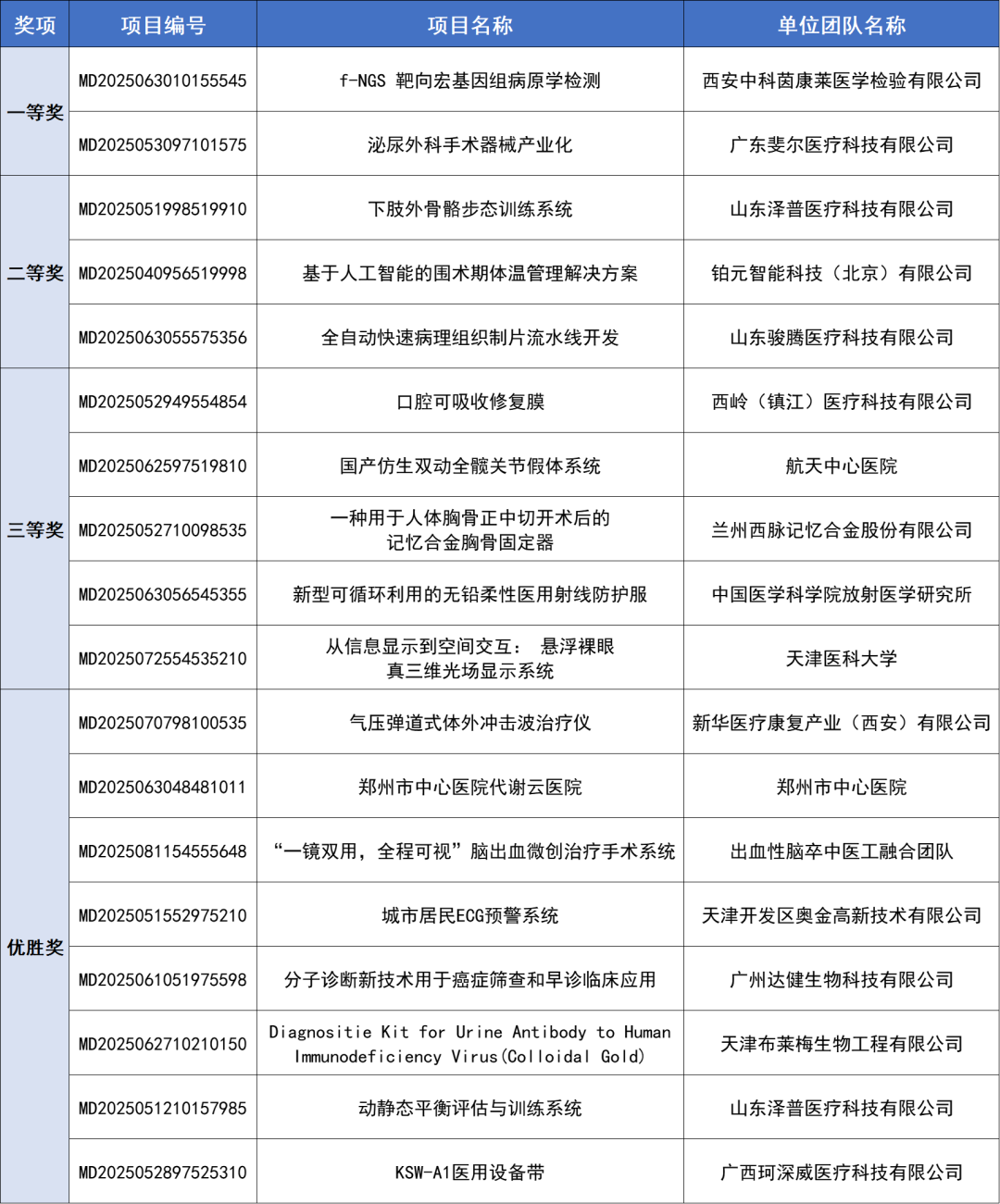 诊疗设备类别赛获奖名单