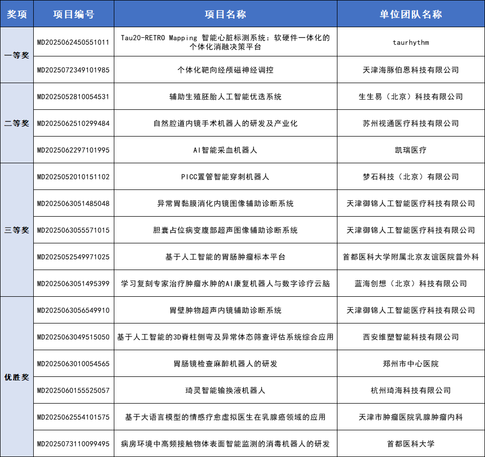 第八届(2025)中国医疗器械创新网创业大赛 人工智能与医用机器人类别赛(初创组)