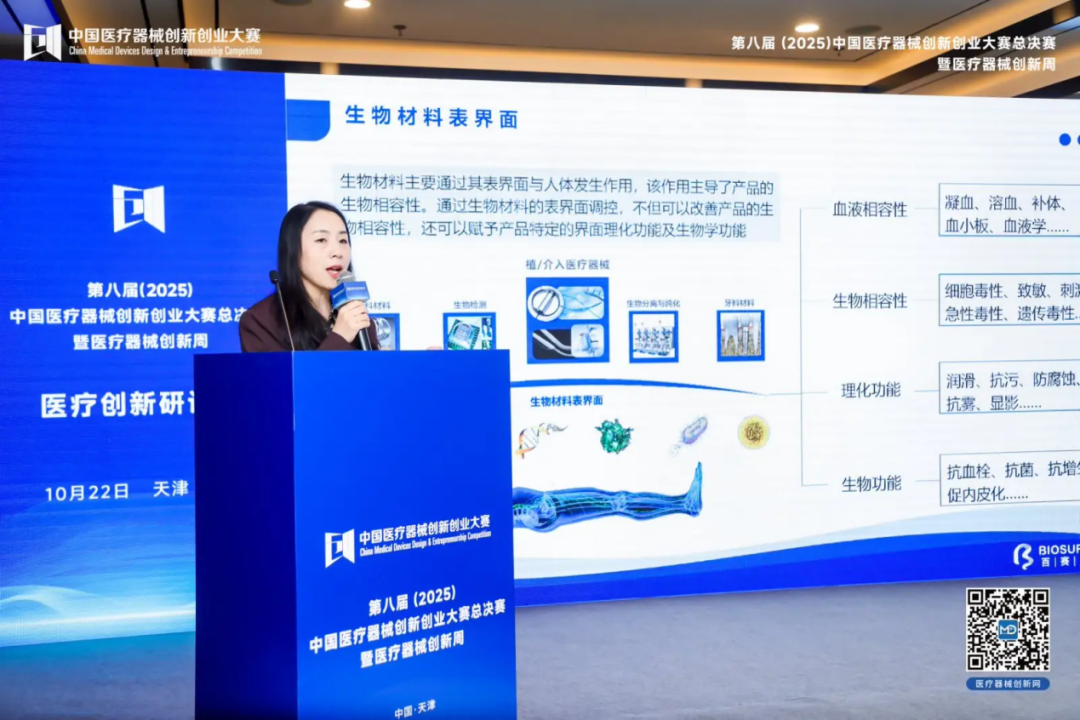 江苏百赛飞生物科技联合创始人兼CEO李丹分享,医用涂层作为植介入医疗器械的“魔法外衣”,可实现载药、润滑、抗凝、抗菌等功能,其研发涉及多学科交叉,需整合全链条资源。百赛飞历时八年搭建覆盖分子设计、涂层工艺、检测设备的全产业链技术平台,主导国内首个亲水涂层行业标准及三项相关团体标准,更通过 “分子 - 界面 - 功能” 三位一体研发体系,打破材料、工艺、设备间的传统割裂,实现全链条创新。