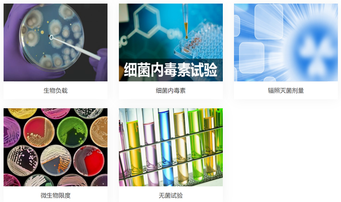 临床前动物实验、消毒产品检测、包装验证、环境检测、化妆品检测、微生物学检测、生物相容性实验,国际认证